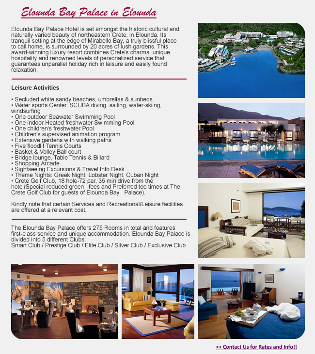 Book your Crete Hotel with us , Elounda Bay in Elounda - Joss Travel