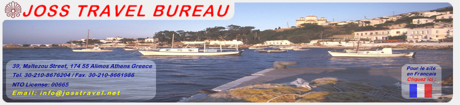Welcome to the one stop TRAVEL GUIDE for your Holidays in Greece! We are a Greek Travel Agency based in Athens - Greece with 35 years of experience, founded by one of the most experienced and successful Greek licensed tour travel guides with a vast knowledge of Greek Myth, Greek Art, Greek Culture and History, as well as a deep understanding of life in Greece today. We cater for Greece packages, such as Island Hopping, Greek Island Holidays, Athens and Classical Greece tours, private Greek touring with excellent licensed Greek guides, cruises in the Greek Islands and shore excursions but also hotel reservations, honeymoon packages and weddings in a Greek Island and much more. Should you wish to plan your Holidays in Greece and the Greek Islands, we are the specialists in whom you can place your confidence. Whatever arrangements you need, you can be sure of one thing: JOSS TRAVEL guarantees your total satisfaction in your Greece Travel experience! You will be glad you chose us, the JOSS TRAVEL BUREAU, known for it’s unique PERSONALIZED SERVICES. Travel to Greece with Joss Travel for a unique one time life experience! |