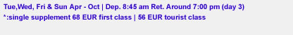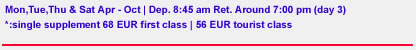 3 Days Classical Tour | Price: 406€ pp (first class)* | 346 € pp (tourist class)* |