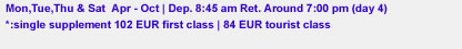 Price: 593€ pp (first class hotels)* | 523€ pp (tourist class hotels)* |