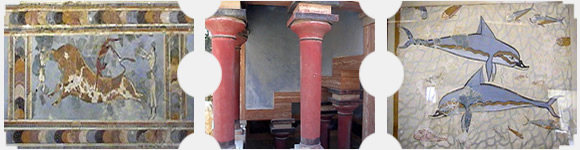 Knossos, the famous Minoan Palace lies 5 kilometres southeast of Heraklion, in the valley of the river Kairatos. The river rises in Archanes, runs through Knossos and reaches the sea at Katsabas, the Minoan harbour of Knossos. In Minoan times the river flowed all year round and the surrounding hills were covered in oak and cypress trees, where today we see vines and olives. The pine trees inside the archaeological site were planted by Evans. Constant habitation for 9,000 years has brought about great changes to the natural environment, so it is hard to imagine what the Minoan landscape was like. |