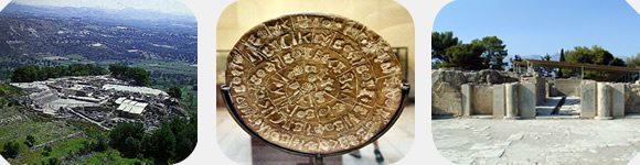 Phaistos, or more correctly the Minoan Palace of Phaistos, is located in the Messara Plain in south-central Crete, 55 kilometres south of Heraklion and a short distance from the archaeological site of Agia Triada, the archaeological site of Gortys and Matala. Phaistos is one of the most important archaeological sites in Crete, with many thousands of visitors annually. Phaistos is "Φαιστός" in Greek and you may find it also written as Phaestos, Faistos or Festos. The Minoan palace of Phaistos corresponds to a flourishing city which arose in the fertile plain of the Messara in prehistoric times, from circa 6000 BC to the 1st century BC, as archaeological finds confirm. |