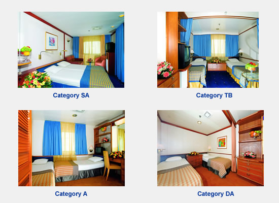 3 Lounges & Disco, 1 Restaurant, 2 Dining Rooms, Bar, Terrace Bar, Pool Bar, Casino, 2 Conference Rooms which can be connected, Internet Corner, Duty Free & Travel Value Shops, Photo Gallery, Shorex Office, Reception-Cruise Office, Beauty Salon, Wellness Center, Swimming Pool, Whirlpool Bath, Telephone, Fax, Satellite Telephone, Doctor on Board. |