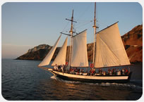 Sunset cruise along the caldera on a traditional 19th Century yacht