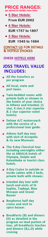 Sat - Istanbul. We will transfer you to the airport for your depart flight after breakfast. End of our services! Hope that you enjoyed the Tour of Greece, the Islands Cruise and Istanbul visit with us! (B)