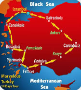 the monastery of the Mevlana Whirling Dervishes. Then have an afternoon drive to